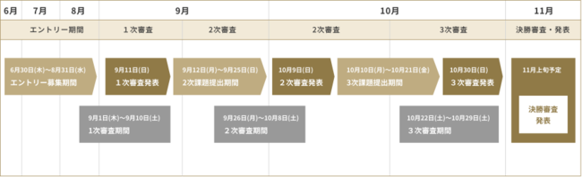 1次審査 ・・・ 9月1日(木)~9月10日(土)/結果発表:9月11日(日)
