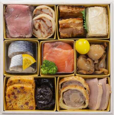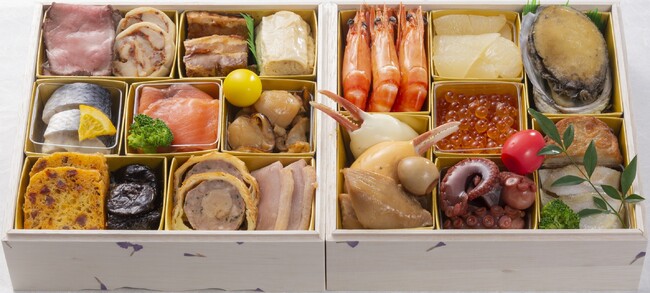 ホテル金沢では、金沢おせちの伝統である彩り、艶やかさを引き継ぎながら、時代の流れとともに変化するお正月の過ごし方に合わせ、北陸ならではの海の幸、山の幸を西洋料理にアレンジした和洋多彩なおせちのラインナップをご用意しました。
