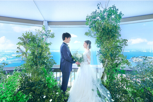 横浜港を一望できる展望フロアを貸切、挙式が行えます。リニューアル記念として5組限定で無料挙式を募ったところ、短い期間にも関わらず約700組のご応募を頂きました。