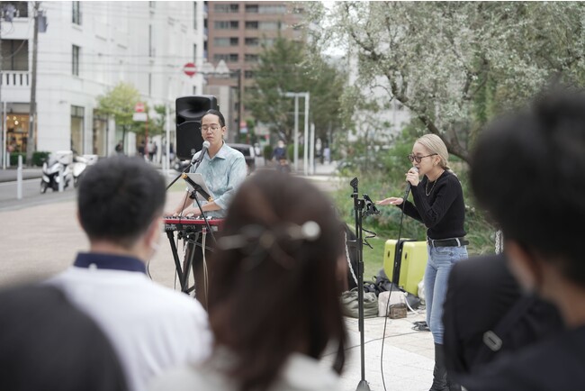 自然豊かな山下エリアの街と繋げる環境デザイン壁面緑化を実施。音楽などのイベントを開催しカップルのデートスポットとしても、楽しめる広場づくりを行っています。