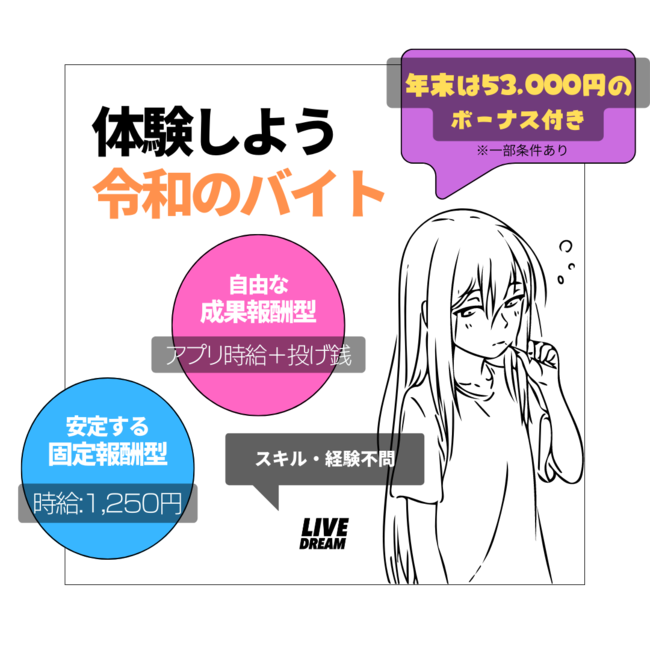 国内最大級ライブ配信事務所LIVEDREAM『ライブドリーム』年末キャンペーン。『固定報酬型』or『成果報酬型』選べる2つのコース。