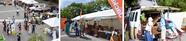 また、ここ数年のキャンプ人気で注目が集まっているキャンプグッズは防災グッズとしても活用できるということをわかりやすく紹介するハピキャンエリアでは、災害時にも役立つアイテムが多く取り揃えられ、出展社のレクチャーのもと、来場者が実際に展示物を手に取りながら体験する様子が多く見られました。特に、車中泊体験コーナーでは、日常的に車を使うことが多い方の関心が高く、普段の備えが「もしもの備え」にもなるということを楽しみながら学んでいる様子が印象的でした。