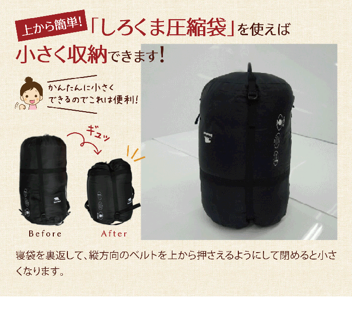 寝袋の中綿と生地を使用することにより、軽くて暖かい掛け布団に仕上がっています。