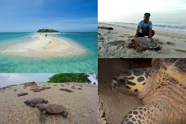 私たちは1995年よりインドネシアにて、7種類のウミガメのうちの一種「タイマイ」の産卵状況の調査を行っています。