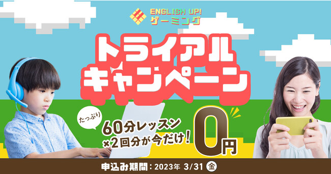 ENGLISH UP!ゲーミングはゲームを通して海外の先生とお話をし、楽しみながら英語学習を行うことができる新感覚の学習サービス。今なら3月31日(金)までレッスン2回まで無料で体験レッスンが受講可能です!外国人講師は全員日本語も話せるので、英語に苦手意識がある方でも気軽にお試しいただけます。