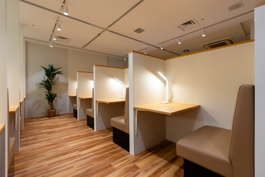 広々としたデスク(最大幅115cm)を多数ご用意。複数の教材やデバイスを同時に使えるため、試験勉強に最適です。また、スタディデスクと快適ソファデスクには全席に5段階調光・3段階調色のデスクライトを設置。目にやさしい環境で、長時間の学習でも快適に過ごせます。