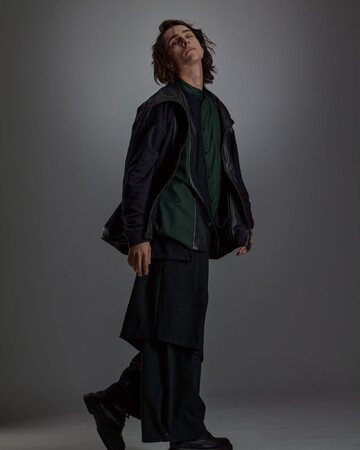 ブランドローンチより3シーズン目となる本コレクションでは、ブラック/ブラウン/グリーンを基調とし、フェイクレザーやジャカードをアクセントにしたアイテムを展開。