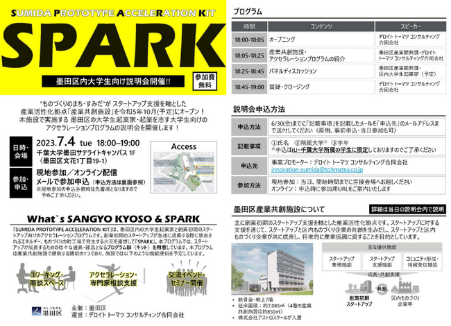 本施設で実施する 墨田区の大学生起業家・起業を志す大学生向けのアクセラレーションプログラムの説明会が開催されます。