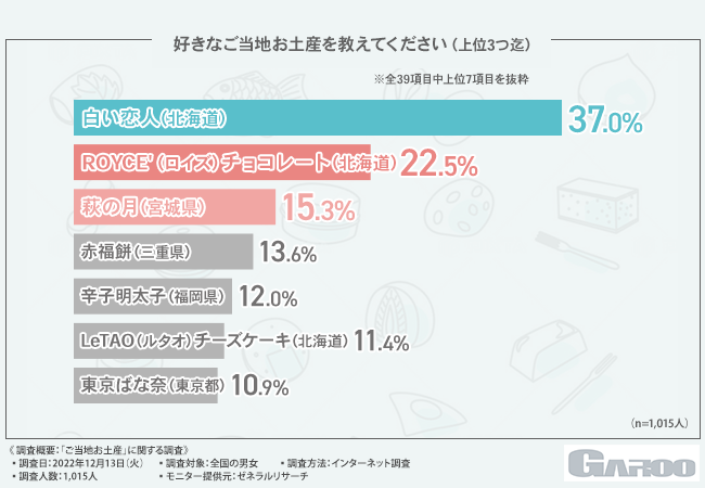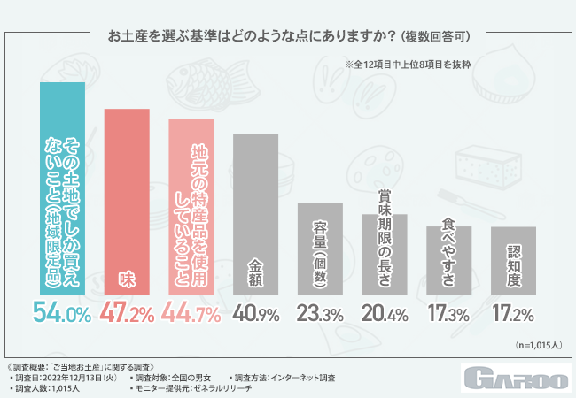 そこで今回、自治体のコンサルタント事業を手掛ける株式会社GAROO(https://ga-roo.com/)は、全国の男女を対象に、「ご当地お土産」に関する調査を実施しました。