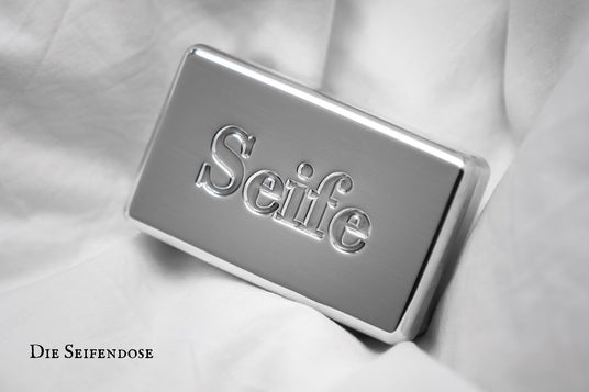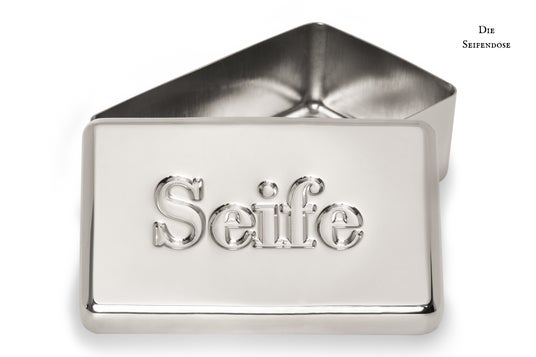 ケースの四隅は程よく丸みがあり、ドイツ語で石鹸を意味する「Seife」という文字が蓋に装飾加工されただけのシンプルなケース。