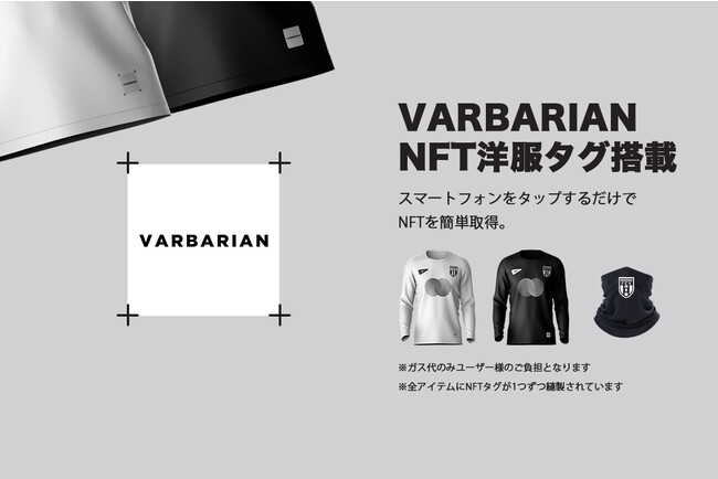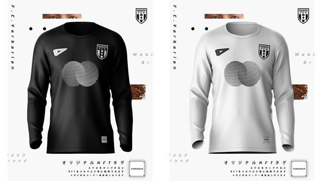 NFTやメタバースを中心に展開を行っているWeb3ブランド「VARBARIAN」は、架空のサッカークラブをコンセプトとしたアパレルライン「FCバーバリアン」を11月22日(火)に発売致します。限定300個のみ販売される現物のTシャツ・ネックウォーマーには「NFTタグ」が縫合されており、スマートフォンを近づけるだけで、FCバーバリアンの初期クラブメンバーNFT(ジェネラティブNFT)を取得できます。