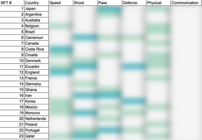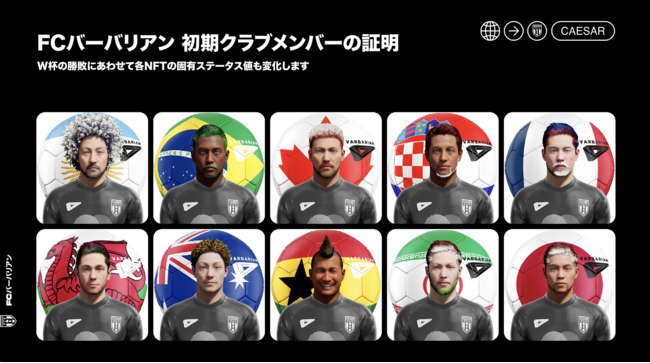 各NFTに割り当てられたステータス固有値(Speed/Shoot/Pass/Defence/Physical/Communication)は2023年のカタールW杯の勝敗結果に連動して変化をします、将来的にメタバースサッカーゲームがコミュニティから制作された際にはこれらの固有値は重要になります。
