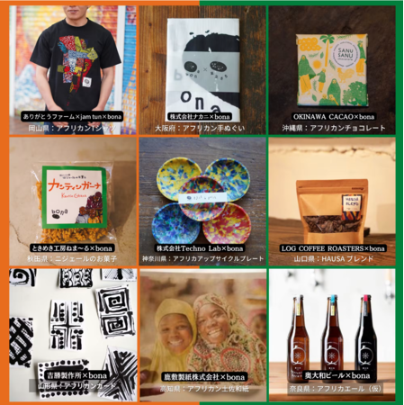 その他、沖縄の「OKINAWA CACAO」とコラボして作成したセネガル産のバオバブ入りの限定・SANU SANUチョコレートや、大阪の堺市にある「株式会社 ナカニ」の手拭い職人・足立さんとコラボして作成したアフリカン手拭い、西アフリカの海洋プラスチックゴミから生まれたアップサイクルのお皿など、アフリカのことを身近に感じていただける返礼品を多数ご用意しています。