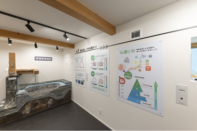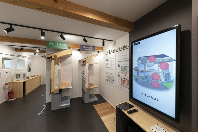 「気密・断熱・耐震」の性能に触れる体感ブースや、インテリアスタイルを空間全体で味わえるコーナーなどを設置。自然素材をふんだんに使ったここち良い住空間を、ご家族で楽しく体感いただけるショールームです。