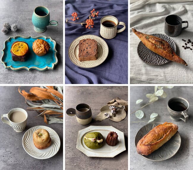 イベント当日はアマムダコタン福岡本店からその日の朝の焼きたてパンを新幹線で京都まで直送します。今、注目の人気陶芸家5人の魅力的なうつわと秋の京都をイメージした当日限定のコラボパンを含む焼きたてパンを100セット限定で販売致します。