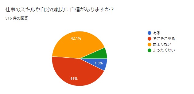 弊社が独自で調査した「仕事のスキルや自分の能力に自信があるか?」というアンケート調査では、以下の結果になりました。