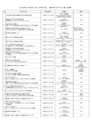 【「まつばら よろし おあがり旅 2022」プログラム一覧(日程順)】