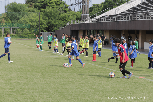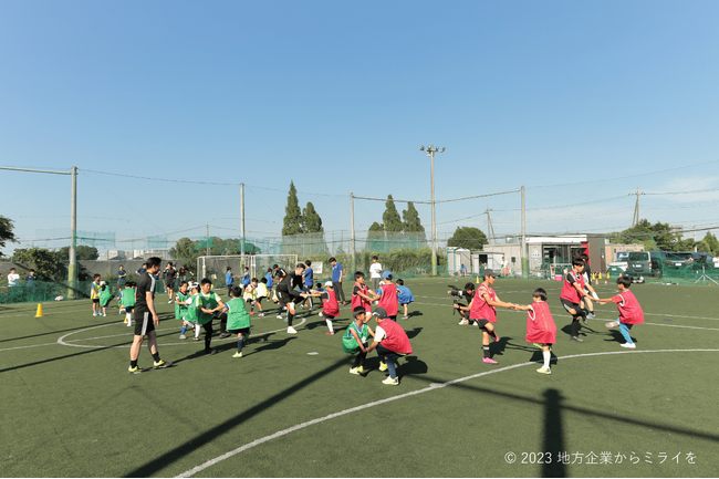 プロサッカー選手と一緒に子どもや大人が汗を流す地域イベントを開催しています。サッカーのミニゲームを始め、足が早くなる方法、ストレッチ方法など、健康づくりをベースにスポーツを楽しむことに主眼を置いたプログラムです。