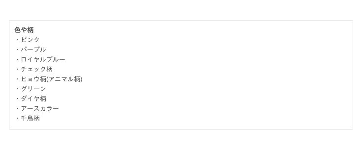 今回アンケートにお答えいただいたみなさんがおすすめする色や柄は、こちらです。
