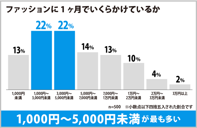 ●ファッションに毎月かけるお金は5,000円未満が多い