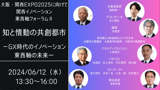 迫る2025年大阪・関西万博に向け、「関西イノベーション東西軸フォーラムII」が「知と情動の共創都市 - GX時代のイノベーション東西軸の未来―」というテーマの下、開催されます。