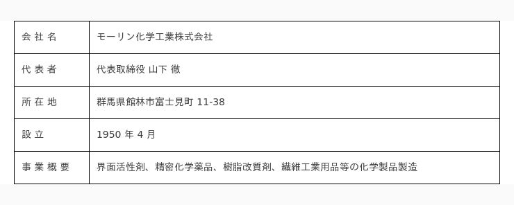 ぐんま地域共創パートナーズ株式会社(代表取締役 鏡山英男、以下「GRASP」)は運営するぐんま地域共創ファンド(以下「本ファンド」)を通じて、モーリン化学工業株式会社(代表取締役 山下 徹、以下「同社」)に対して成長支援を目的とした出資をいたしましたので、お知らせいたします。