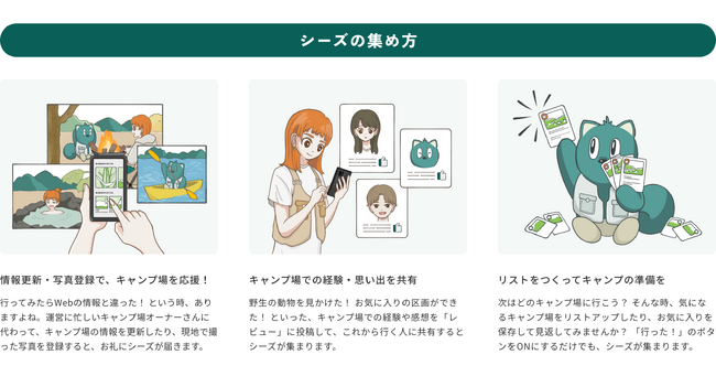 森で動物が集めた木の実や種(シード)から芽が出て木となり、豊かな森が育つように、iihiで集めた「シード」によってキャンプへの愛好心がさらに育まれ、キャンプやアウトドアシーンが豊かになることを期待しています。