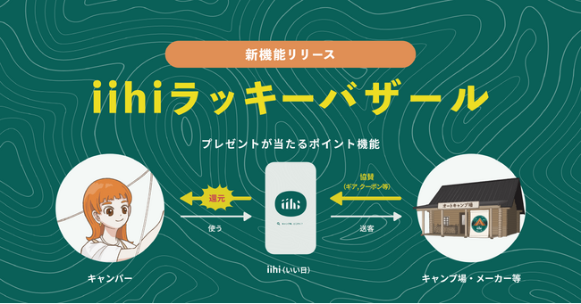 iihiは、新たに実装したポイント機能が、キャンプが好きという気持ちを後押しし、それによってキャンプに行き自然で遊ぶ人が増え、アウトドアシーンが盛り上がることを目指します。