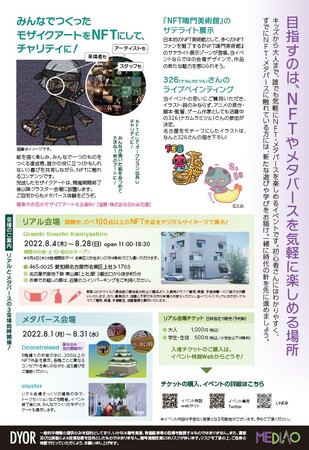 Cryptoの大衆化を目指すWeb3コミュニティMediaDAO(メディアダオ、代表: かねりん)は、NFTアートのイベント開催を通じて、NFT化されたデジタルアート作品を制作。チャリティオークションプロジェクトを開催しました。同作品は365,000円で落札され、このたび全額を、非営利法人に寄付し、デジタル技術や社会の仕組みを楽しく学ぶ小中学生向けの「キッズ&ジュニアプログラム」用の資金としてご活用いただくこととなりましたので、ご報告いたします。
