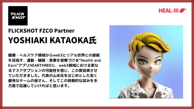 Astar Network上のヘルスケアブロックチェーンゲーム「HEALTHREE(ヘルスリー)」を運営する、HEALTHREE Pte.Ltd.社(本社:シンガポール共和国、CEO:Shinya Ray Yamamoto、以下「当社」)は、W fund、CryptoGames、FLICKSHOT FZCOをはじめとする合計7社、個人投資家2名より資金調達を実施したことをお知らせいたします。
