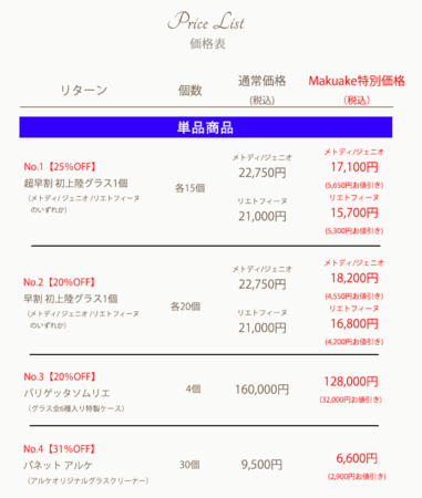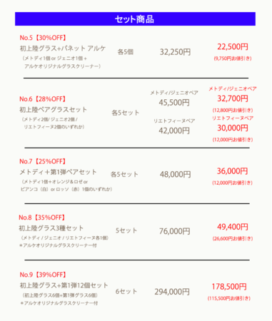 (セット販売、ペア販売、個別販売 数量限定最大40%割引あり)