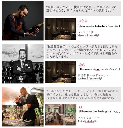 ARCHÈ GLASS(アルケグラス)は、イタリアのミシュランガイド2022 3つ星獲得、そして2022年度版「世界のベストレストラン50*」にて10位にランクインした『Le Calandre(レカランドレ)』をはじめ、多くの星付きリストランテから高い評価を受けています。