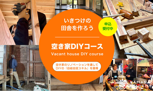 2023年11月から2024年2月にかけて、全5回。千葉県南房総で空き家のまるごとリノベーションを通して、熟練した地元大工とDIYerたちから学ぶ、ヤマナアカデミー「空き家DIY」コース。