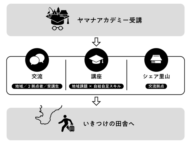 日々をより心地よく、豊かにするためのヒントは自然の中にある。「いきつけの田舎をつくろう」を合言葉に、“地域課題”を学びながら、“自給自足スキル”を身につける「ヤマナアカデミー」。南房総、そして地域ならではのコースを、交流拠点のシェア里山「ヤマナハウス」を軸に展開しています。