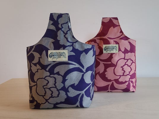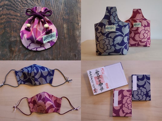 本製品は、秩父織塾工房横山オリジナルの、単色のみでコントラストの効いた鮮やかで上品な花柄デザインで、長瀞の自然豊かな四季と風景を表現し、『長瀞の四季と風景』シリーズとして春夏秋冬で展開する予定です。秩父銘仙を染織し、第1弾となる『秋の長瀞』では、(1.銀色の岩畳と荒川2.赤紫色の秋の紅葉)の2色展開で、御朱印帳・マスク・巾着・ワンハンドBAGの4種を販売いたします。今後は、四季に応じ第二弾『冬の長瀞』、第三弾『春の長瀞』、第四弾『夏の長瀞』の発表も予定しています。