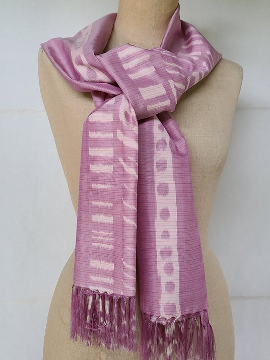 ・埼玉県長瀞町〈秩父織塾工房横山〉 秩父銘仙スカーフ幾何学柄【ピンク】