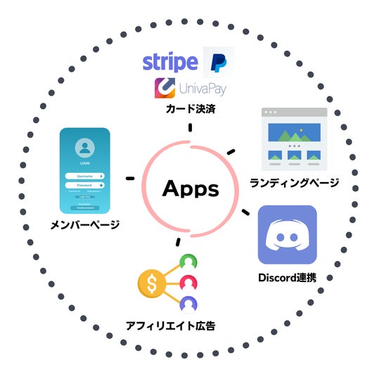 Appsは2020年冬にプロトタイプが完成し、2022年3月に正式リリース(有料化)しました。最初は米決済大手Stripeの拡張ツールとして提供していましたが、同年12月に国内の決済代行事業者UnivaPayのAPIに対応し、決済導入の総合ツールとして変化していきました。また、オンラインコミュニティ構築のニーズに応えるため、世界最大のチャットツールDiscordのAPIに対応し、利用者数及び決済額を大きく伸長させました。