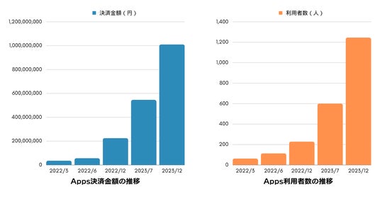 決済導入支援ツールを提供するライムホールディングス株式会社(所在地:大阪府北区 代表取締役社長:中井聖、以下 ライムホールディングス)は、同社が運営する決済導入支援ツール「Apps(アップス)」(URL:https://theapps.jp/)」の決済流通総額が2023年12月21日に10億円を突破し、また利用者数が1,200社超となったことを発表します。