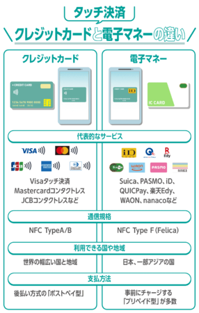 ≪クレジットカードのタッチ決済と電子マネーの違い≫