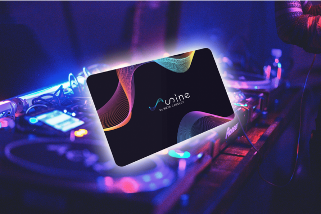 イベント当日販売するカード型ウォレット内には、sine by META CAMELOTのNFT1つ・Meta Cross 1stイベント参加記念NFT1つが内蔵されています。スマホをカードにかざすと、そのNFTを確認することが出来、CLUB CAMELOT入場時に見せることで、無料(別途ドリンク代1,000円=2杯)で入場できます。