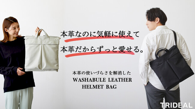 職人の技でお客様のイメージをかたちにするバッグメーカー・株式会社コーエイ(本社:熊本県熊本市、代表:松下 輝昭)が運営する長く愛用出来る物作りを信念にしているTRIDEALが本革バッグの使いづらさを一つずつ解消して作った「愛着を持ってずっと使える。ウォッシャブルレザーヘルメットバッグ」の先行予約販売を開始しました。