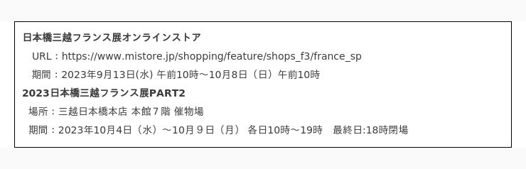販売期間:2023日本橋三越フランス展PART2(2023年10月4日~10月9日)、日本橋三越フランス展オンラインストア(9月13日~10月8日)