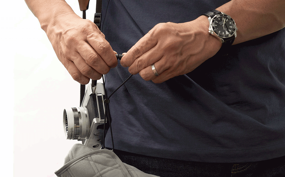 さらに取り外し可能なコードストッパー付バンジーコードでカメラストラップやバッグに引っ掛ける事が可能です。
