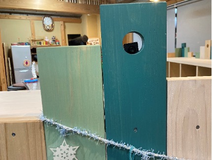 最後に行った発明品の発表では、センサーの前を人が通ると「こんにちは」という作品や、カラコロツリーの玉の音と玉が落ち切ったらLEDが反応して小さなクリスマスツリーが点灯する作品、ままごとの鍋のふたを開けると魔女の笑い声が響く作品、お椀を開けたり閉めたりした明暗に反応して、LEDの色が変わる作品、カードゲームの入れ物に仕掛けられた「ちくたく」という怪しい音と開けた時に衝撃音の鳴る作品が発表されました。どの作品も、子どもが自分で仕掛けを説明しながら実演発表しました。講師の成田さんは緊張した子どもの説明をわかりやすく解説してくださり、発表した子どもたちは満足そうでした。光ったり、音がしたり、そのたびに参加者からも一緒にいた大人たちからも歓声が上がりました。終わった後も、子どもたちのアイディアは止まりませんでした。青梅こども未来では、これからも子どもたちの生きる力を育む取り組みを提供してまいります。