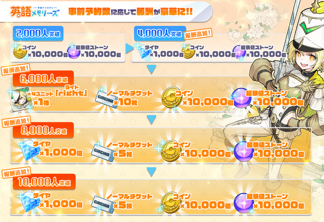 & 経験値ストーン×10,000追加● 8000人突破:ダイヤ×1,000追加