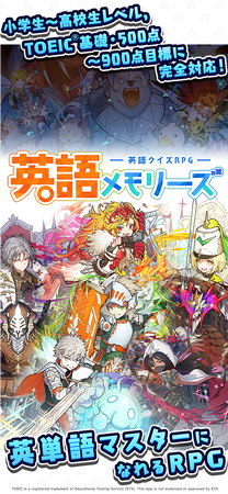学習をコンセプトにしたゲームアプリの開発・運用を行うゲーミングメモリー株式会社(本社:大阪府大阪市 代表取締役:辰巳準之介 以下ゲーミングメモリー)は、iOS/Android向け新作アプリ『英語クイズRPG 英語メモリーズ』の事前予約を開始したことをお知らせいたします。