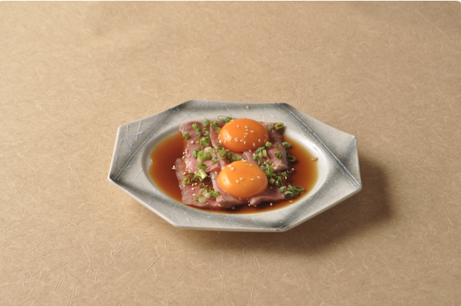 ・<新商品>ダブル卵黄飛騨牛ユッケ ¥980(税込)