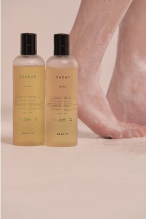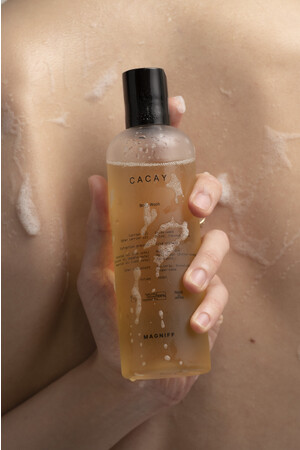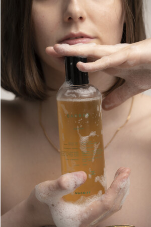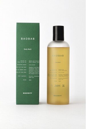 〈MAGNIFF〉のボディウォッシュは伝統的な製法にリスペクトを払い、植物オイルから直接に液体石けんをつくる「直接鹸(けん)化製法」で作られている。しっかりと皮脂汚れを落として洗い上げつつ、植物オイルが本来持つ保湿成分を壊さずに肌に届ける*1、天然由来のボディウォッシュだ。