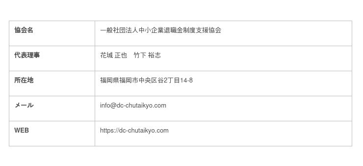 一般社団法人中小企業退職金制度支援協会(本社:福岡市中央区、代表理事:花城正也、以下「協会」)と株式会社北九州銀行(本店:福岡県北九州市門司区、頭取:嘉藤晃玉、以下「北九州銀行」)は、北九州銀行のお客様の企業型確定拠出年金(以下、「企業型DC」)の導入・継続投資教育の支援を目的としたビジネスマッチング契約を締結した事をお知らせいたします。