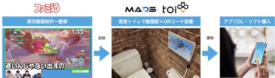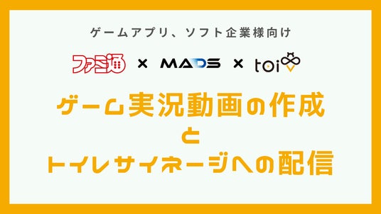個室トイレ内にデジタルサイネージを設置するだけで定期的な副収入を提供する、トイレ内動画広告『トイビー』を開発・運営する株式会社トイビー(本社:東京都渋谷区、代表取締役社長:小海老澤 一樹、以降トイビー)は、国内最大級のゲームメディアである「ファミ通」(運営:株式会社KADOKAWA Game Linkage)と、デジタルOOHアドネットワーク事業およびCMS開発・運用事業を行う株式会社MADSと共同で、新たなデジタルサイネージメニューを開発したことをお知らせいたします。